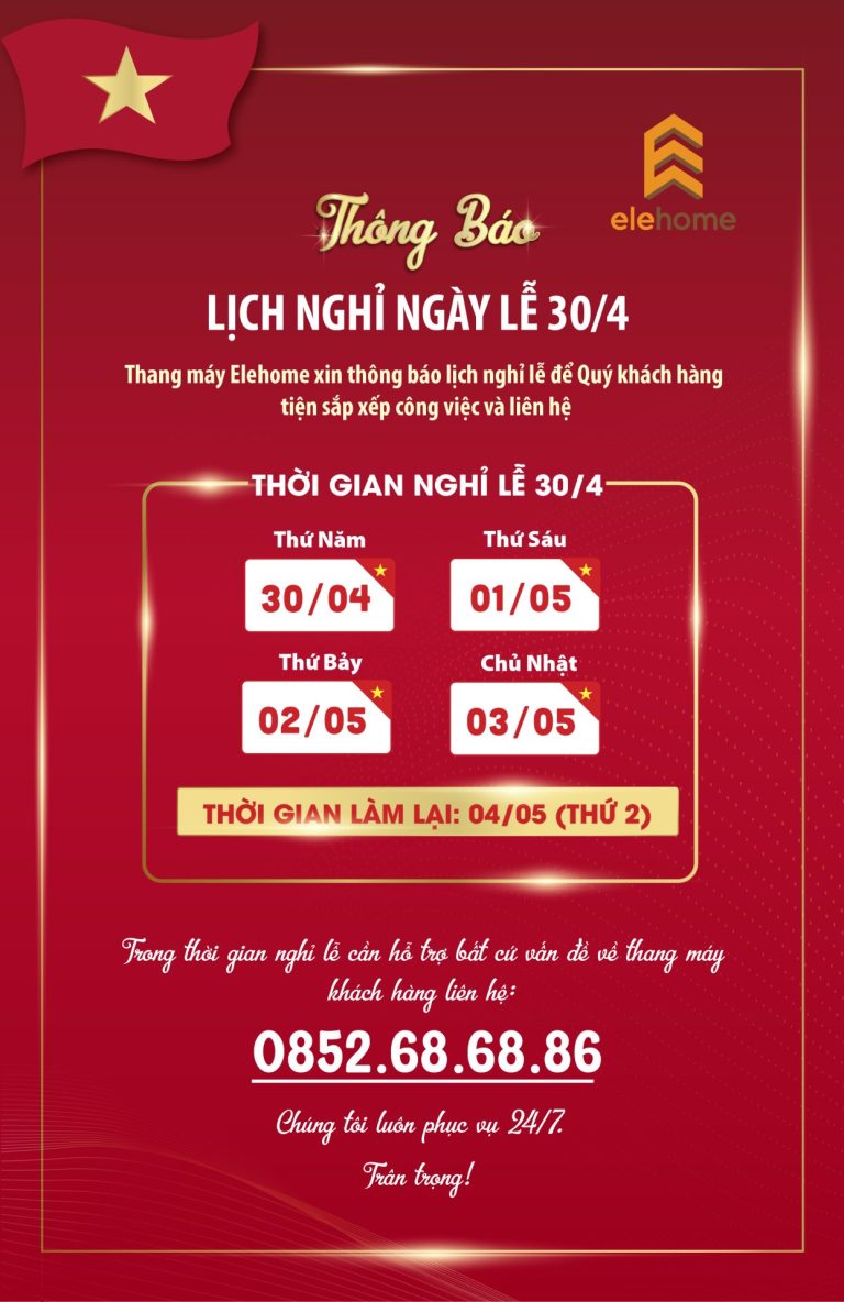 Thông báo lịch Nghỉ lễ 30/4, 1/5 Thang máy Elehome